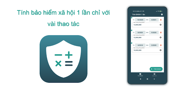 Ứng dụng tính bảo hiểm xã hội 1 lần, tính lương hưu, tính bảo hiểm thất nghiệp, tính thuế thu nhập cá nhân bằng cách đơn giản nhất trên điện thoại.